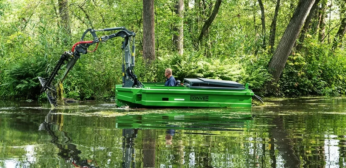The Conver C585 is an amphibious machine developed for the maintenance of ditches, canals and ponds.
