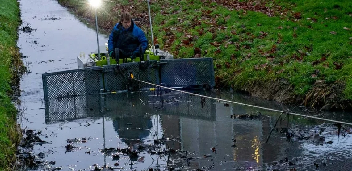 The C81 is developed to work in very narrow, shallow waterways. The silt pusher is optimally suited for pushing organic silt. The C81 has a very compact design, and is characterized by its hydraulic adjustable dozer blade and hydraulic rear winch that are powered by a small petrol-power pack.