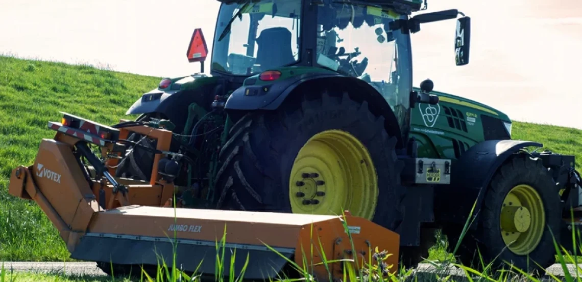The proven drive train and mowing head of the VOTEX Jumbo are applied in the same way to the Jumbo Flex, as is the three point hitch with the SWING-ON-LINE® system.